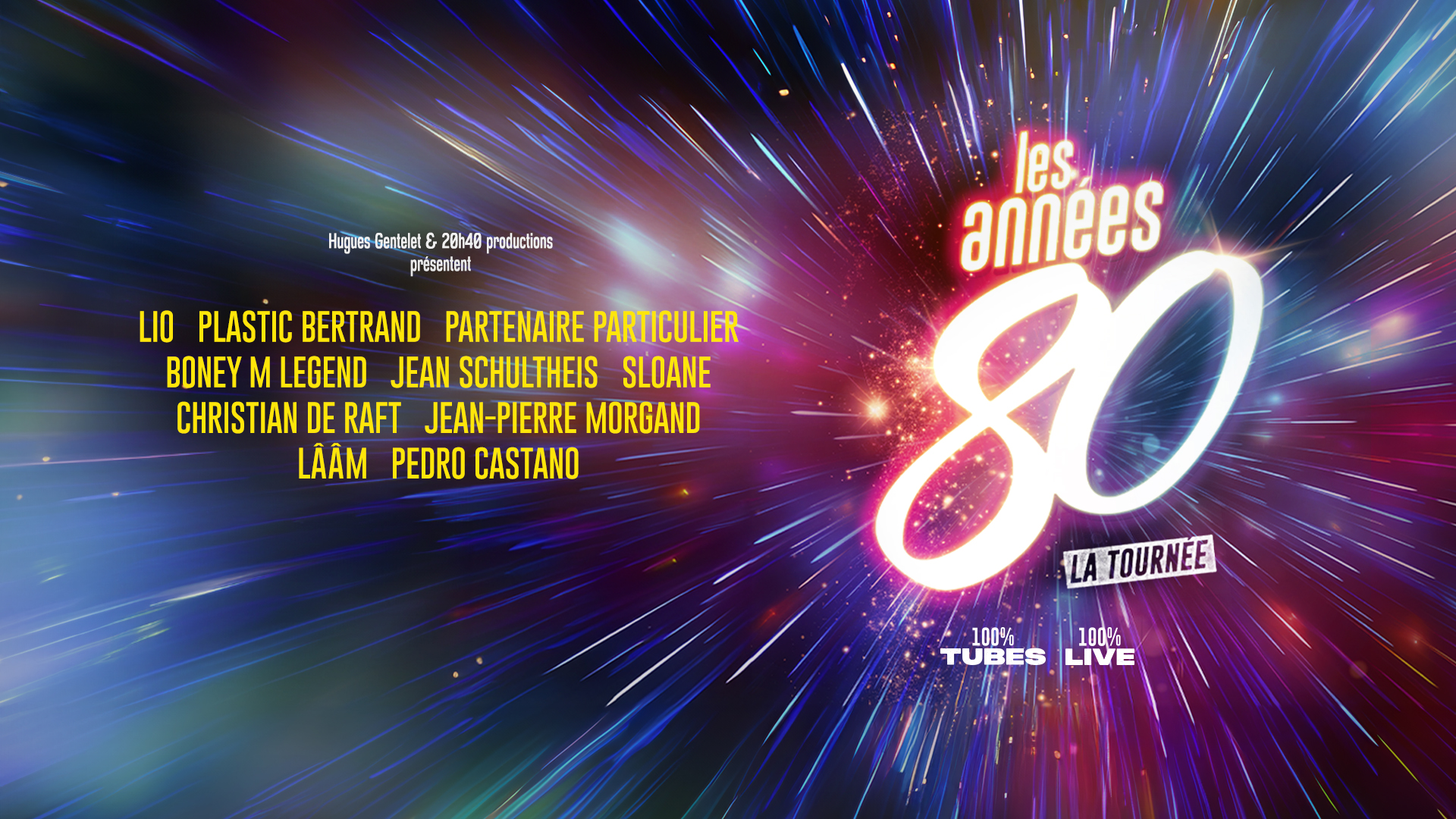 Les Années 80, La Tournée c’est une grande fête 100% Live avec LIO, PLASTIC BERTRAND, PARTENAIRE PARTICULIER, BONEY M LEGEND, JEAN SCHULTHEIS, SLOANE, CHRISTIAN DE RAFT, JEAN-PIERRE MORGAND, LÂÂM & PEDRO CASTANO.